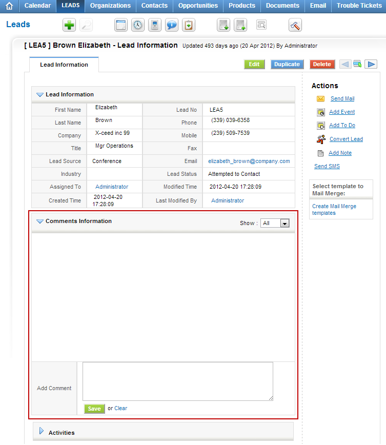 Activate or Deactivate Comments Section/Block in VTigerCRM